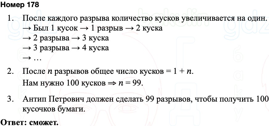 Антип Петрович разорвал газетный лист пополам. Потом взял один из кусков и разорвал его пополам. Опять взял один из кусков и разорвал пополам. Антип Петрович может рвать газету таким образом сколь угодно много раз. Сможет ли он получить в результате 100 кусков?