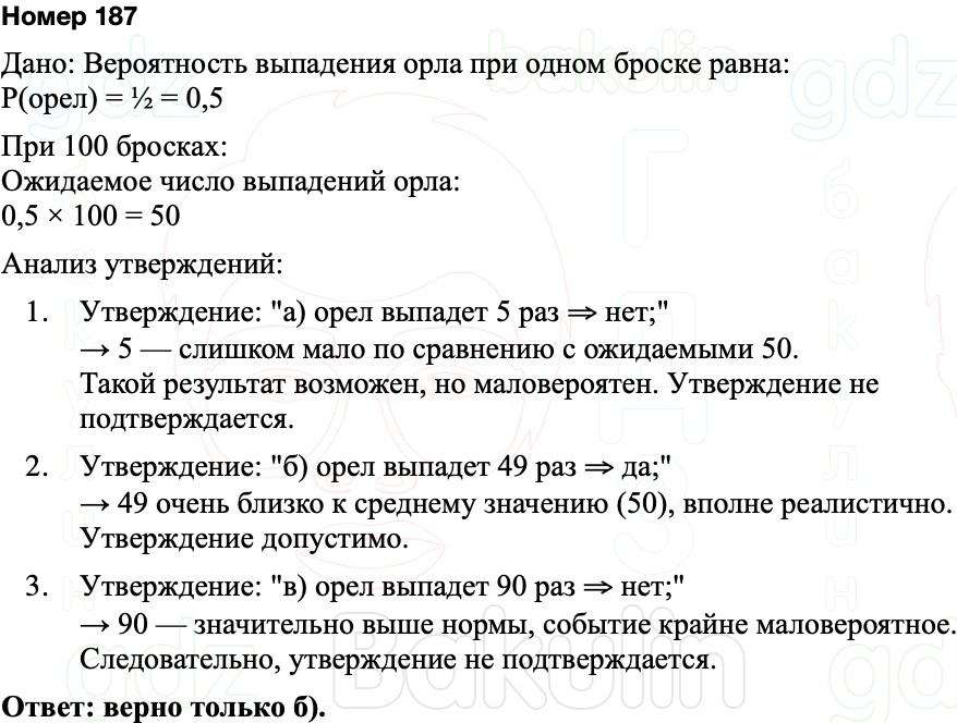 Для правильной монеты мы полагаем, что вероятность выпадения орла равна 0,5. Разумно ли ожидать, что при 100 бросаниях монеты орёл выпадет: