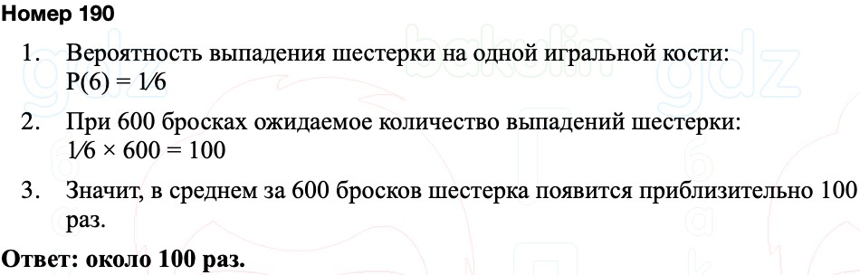 Вероятность выпадения шестёрки на правильной кости равна 1/6. Сколько раз, по вашему мнению, следует ожидать выпадение шестёрки при 600 бросаниях кости?