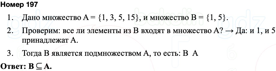 Обозначим буквой А множество делителей числа 15, а буквой В - множество делителей числа 5. Является ли одно из них подмножеством другого?
