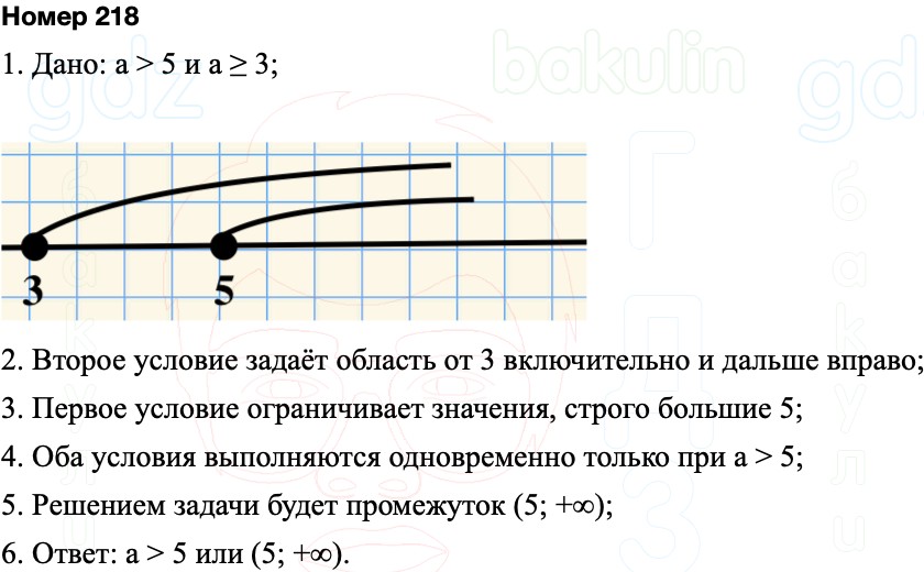 Решая систему неравенств, школьник нашёл, что переменная а должна удовлетворять одновременно двум утверждениям: а > 5 и а ³ 3. Запишите множество всех значений а, которые являются решением задачи.