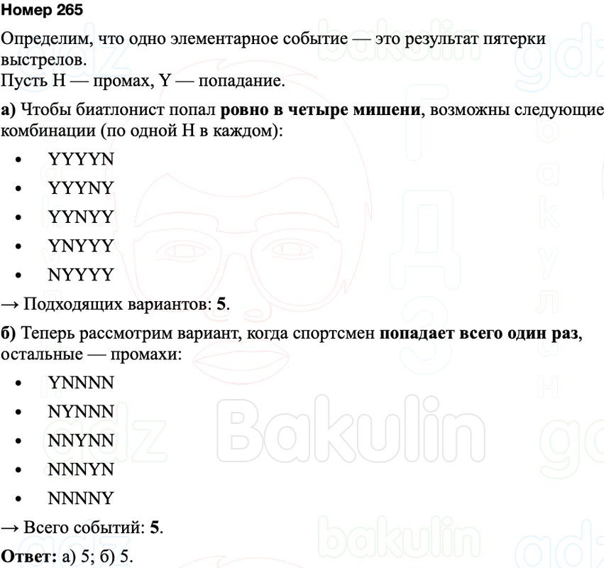 Биатлонист делает по одному выстрелу в каждую из пяти мишеней. Что является элементарным событием в этом опыте? Сколько элементарных событий благоприятствует событию: