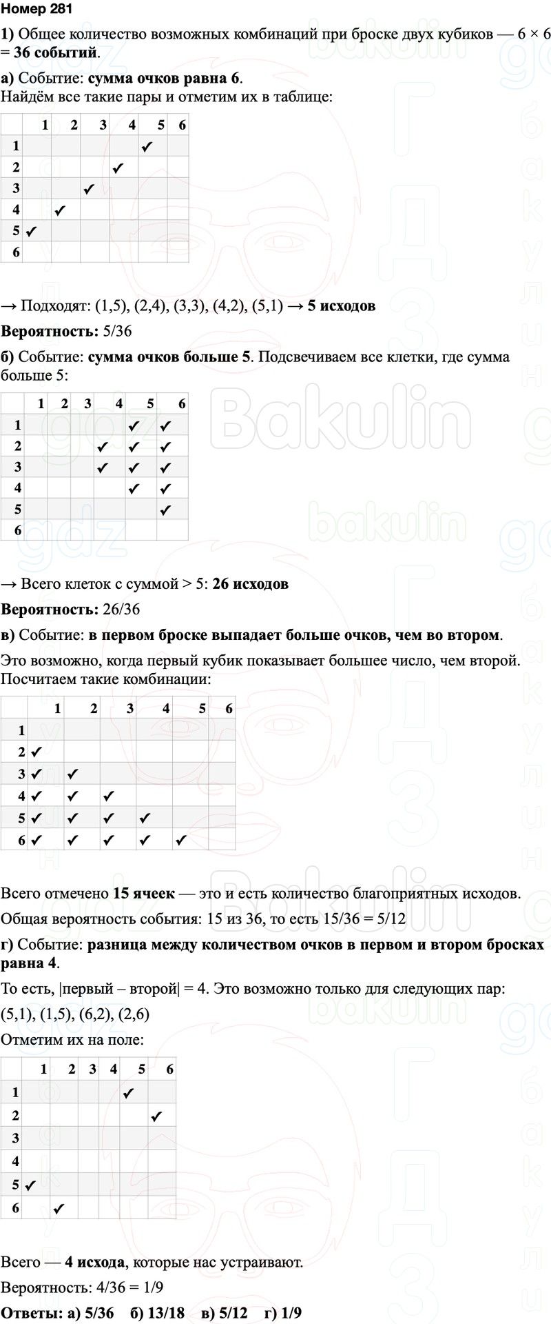 г) «количество очков, выпавших в первый раз, и количество очков, выпавших во второй раз, различаются на 4».