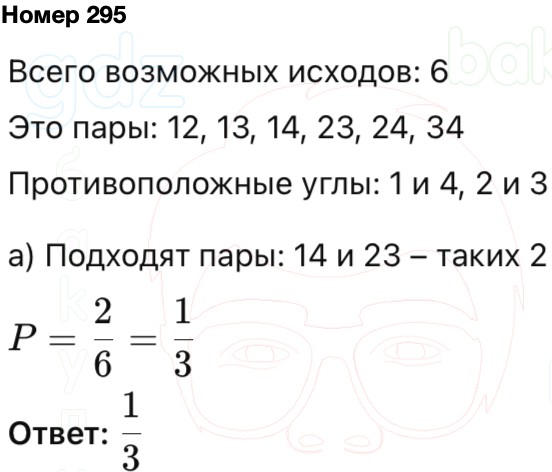 Одно время на улицах и вокзалах профессиональные игроки предлагали прохожим испытать удачу в простой игре. Зажав в кулаке обычный носовой платок так, что наружу высовывались только четыре уголка, игрок предлагал прохожему взять два любых конца и потянуть за них. Если прохожий вытаскивал два соседних уголка, то он проигрывал. Если прохожий вытаскивал два противоположных уголка, то он выигрывал. Найдите вероятность выигрыша прохожего.