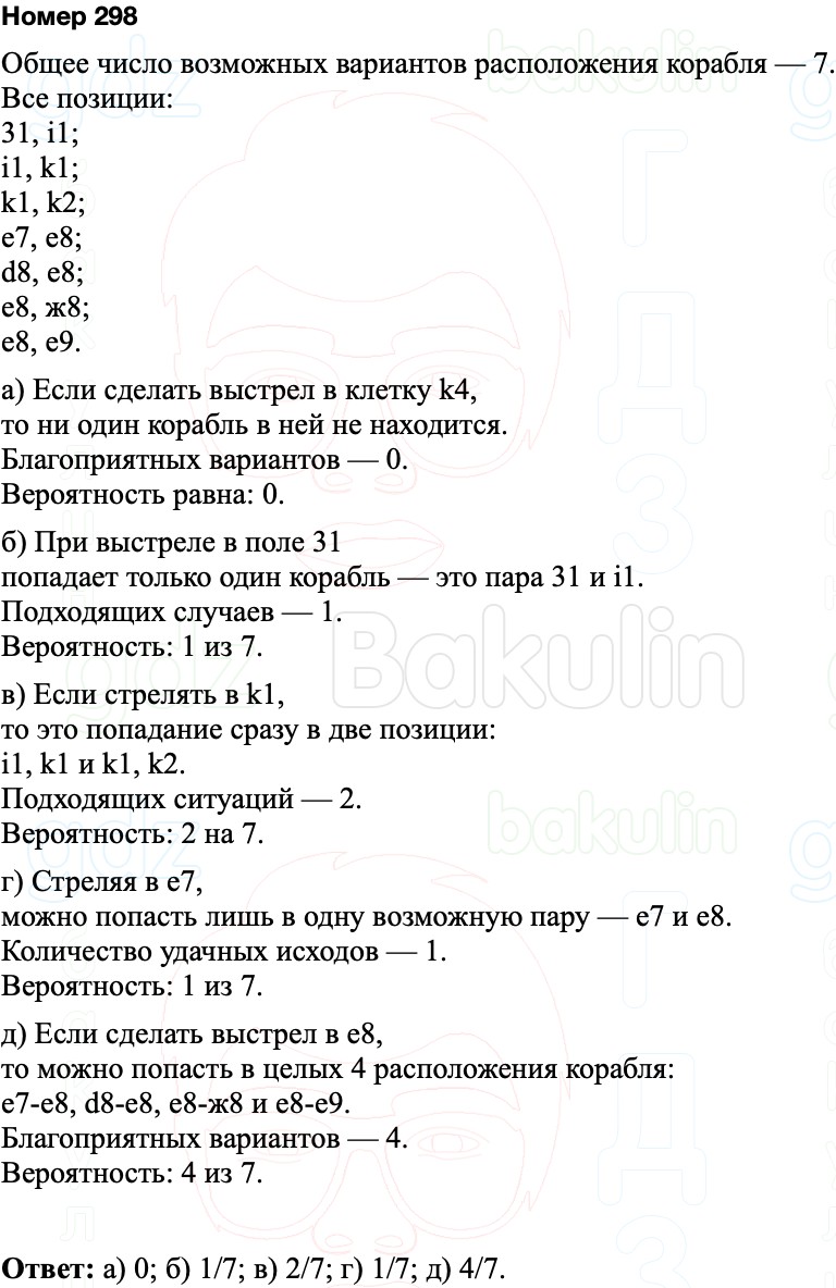 На рисунке 69 показано положение в игре «Морской бой». Красным цветом показаны потопленные корабли противника. У противника остался только один двухпалубный корабль, положение которого неизвестно. Клетки, в которых нарисованы точки, - это клетки, по которым мы уже стреляли. В них не может быть корабля. Считая равновозможными любые допустимые положения последнего корабля, найдите вероятность того, что мы попадём в него, выстрелив в поле: