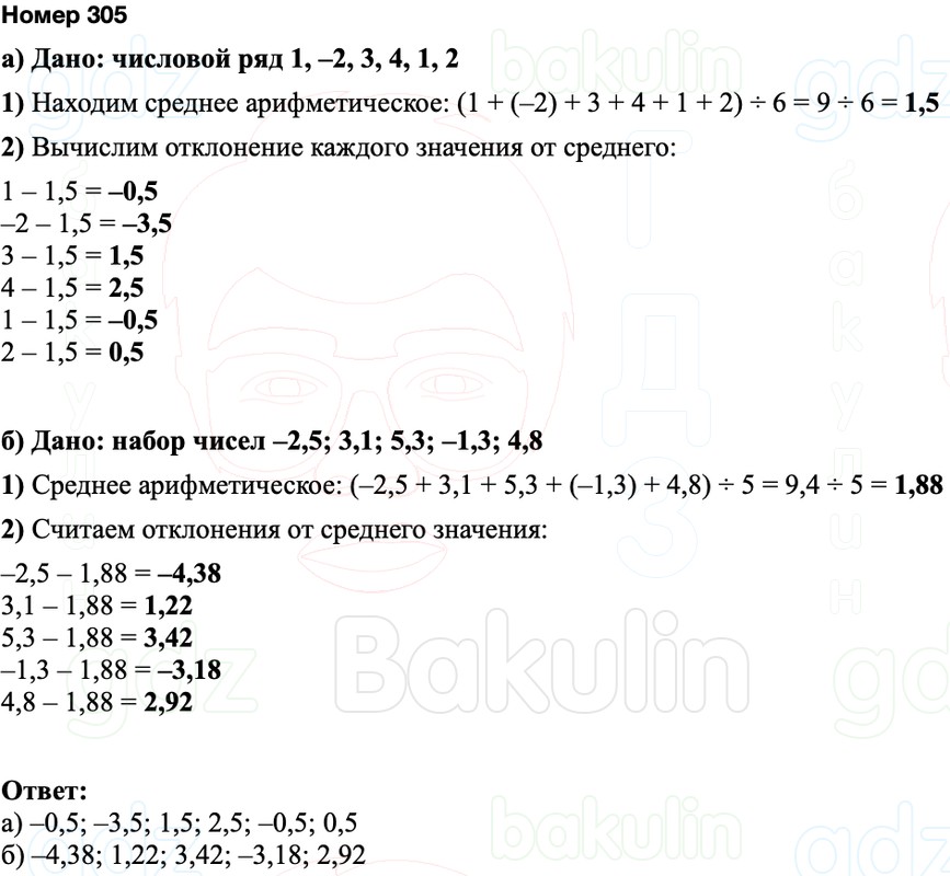 Найдите отклонения от среднего арифметического чисел набора: