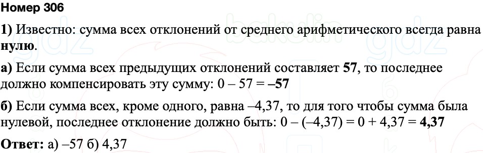 Дан некоторый числовой набор. Известно, что сумма отклонений от среднего всех чисел, кроме последнего, равна: a) 57; б) -4,37. Найдите отклонение последнего числа.