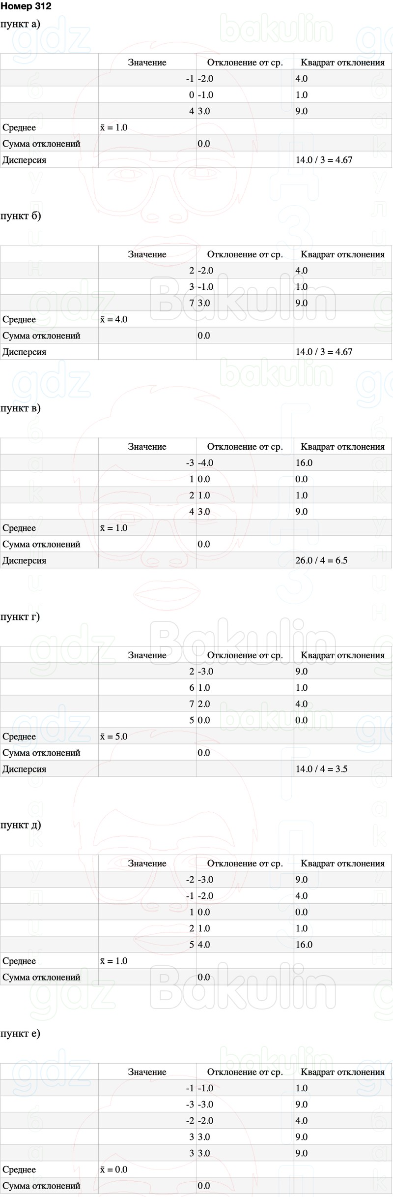 Для данных числовых наборов составьте таблицу отклонений от среднего