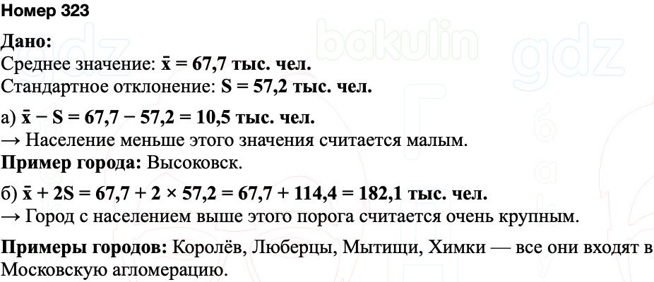 б) Будем считать подмосковный город очень крупным, если его население больше, чем х + 2S. Перечислите очень крупные города. Подумайте, какие общие черты есть у этих городов.