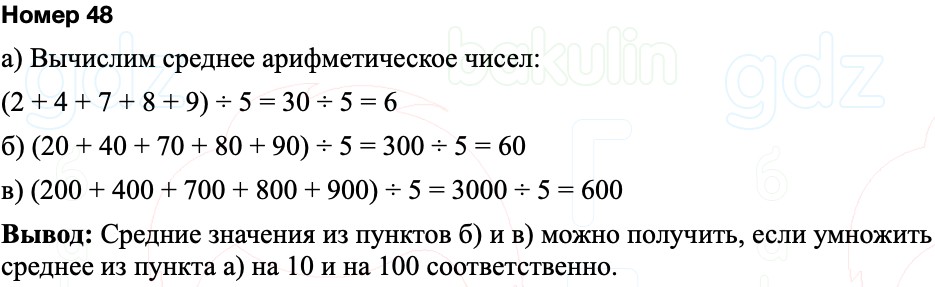 б) (20 + 40 + 70 + 80 + 90) : 5 = 300 : 5 = 60