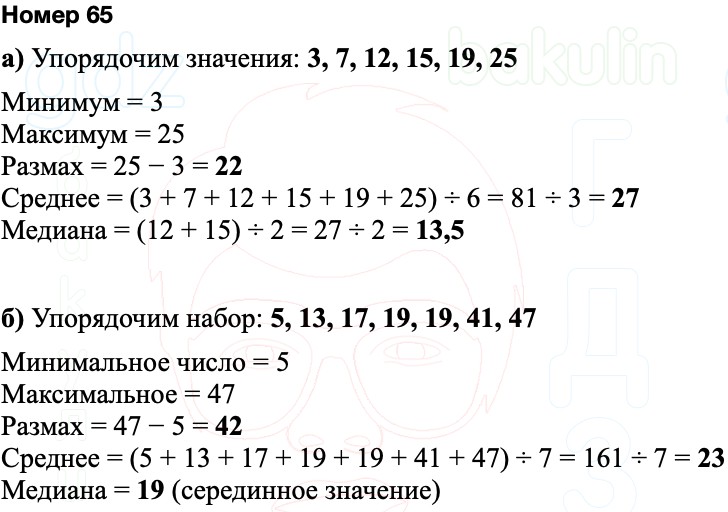 - Среднее значение: (3 + 7 + 12 + 15 + 19 + 25) / 6 = 71 / 6 = 13,5.