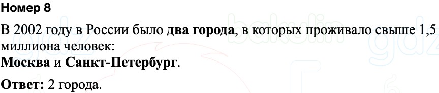 2 города в России в 2002 г. имело население более 1500 тыс. чел. - Москва и Санкт Петербург