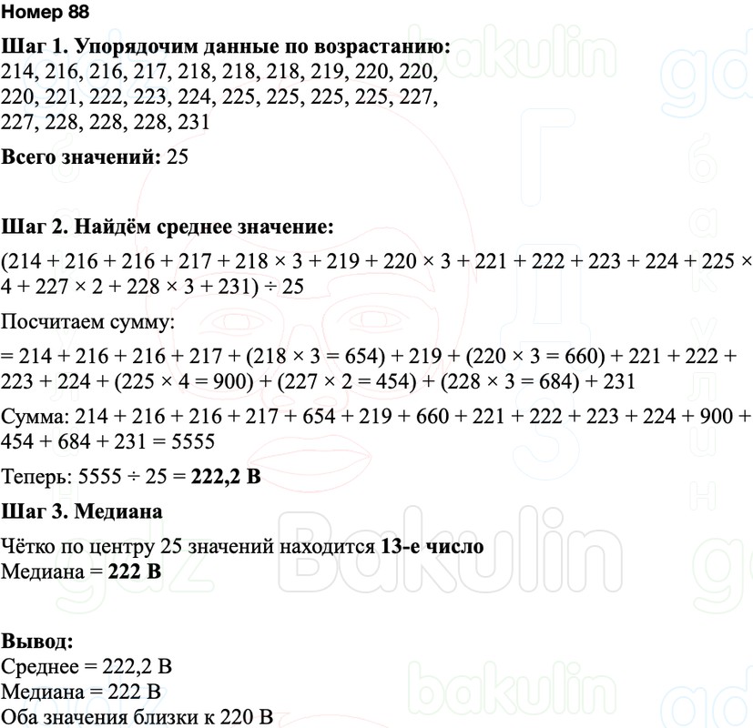 Среднее значение: 5555 / 25 = 1111 / 5=222,5