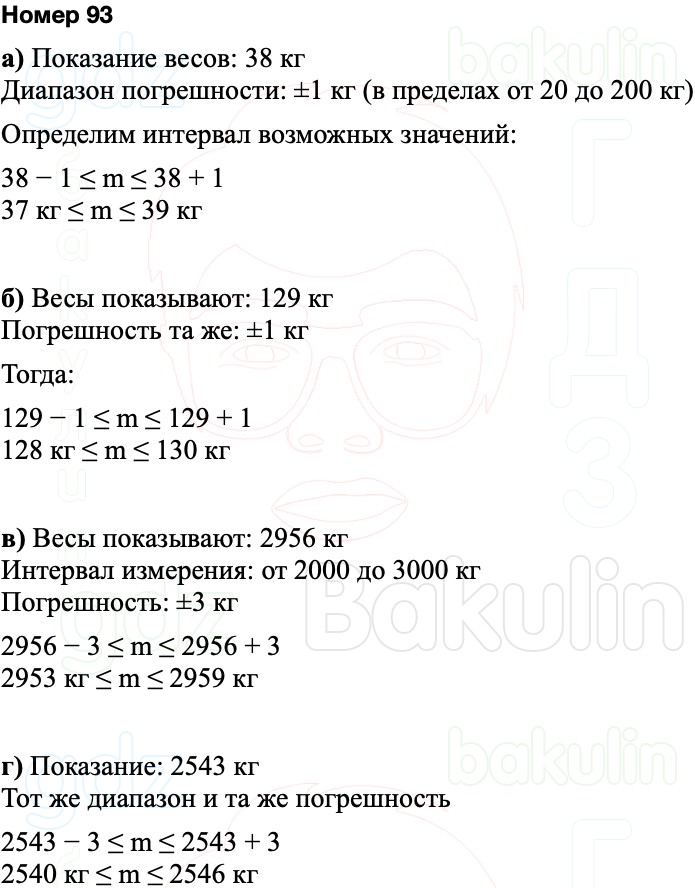 Рассмотрите таблицу 33. В ней даны допустимые погрешности весов в разных диапазонах измерения. Предположим, что весы исправны и погрешность измерения не выходит за пределы допустимой. Запишите с помощью двойного неравенства границы, в которых находится истинное значение массы т некоторого груза, если при взвешивании этого груза весы показывают: