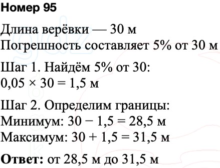 На мотке верёвки указано, что длина верёвки составляет 30 м ± 5%. В каких пределах может быть заключена истинная длина верёвки?