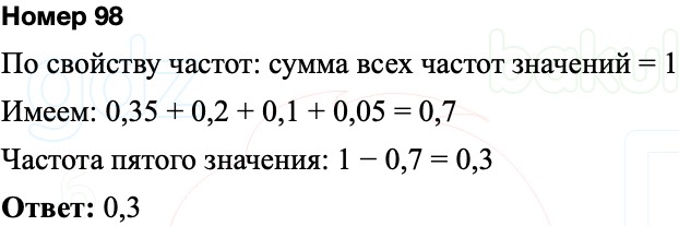 В числовом наборе 5 значений. Частоты четырёх значений известны: 0,35, 0,2, 0,1 и 0,05. Найдите частоту пятого значения.