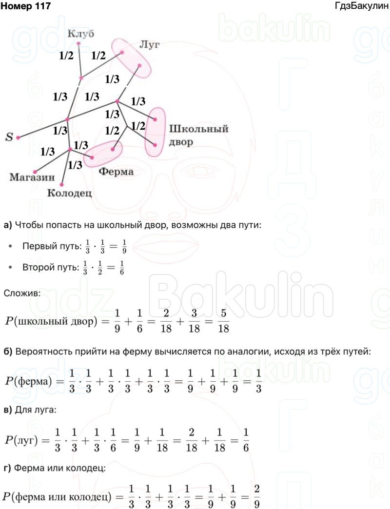 Сергей Петрович гуляет по своему посёлку. Схема дорожек показана на рисунке 48. Он начинает прогулку в точке S и на каждой развилке с равными шансами выбирает любую из дорожек (но не возвращается).