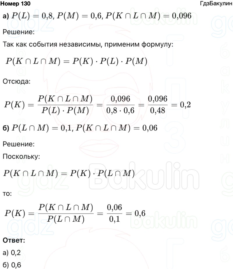 б) P(L Ç M) = 0,1, P(K Ç L Ç M) = 0,06.