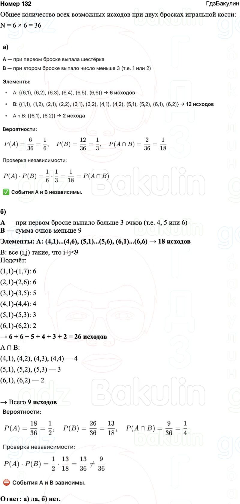 б) А «при первом броске выпадет больше трёх очков» и В «сумма выпавших очков меньше девяти»?