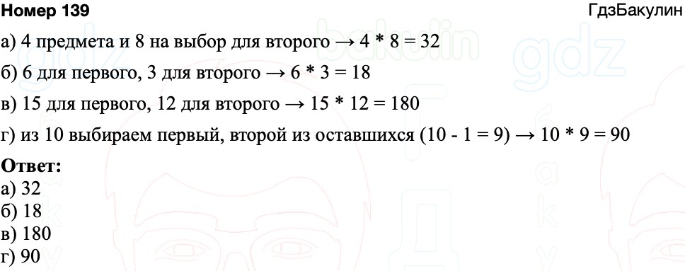 г) первый предмет из 10 предметов, а второй из всех оставшихся после бора первого предмета?