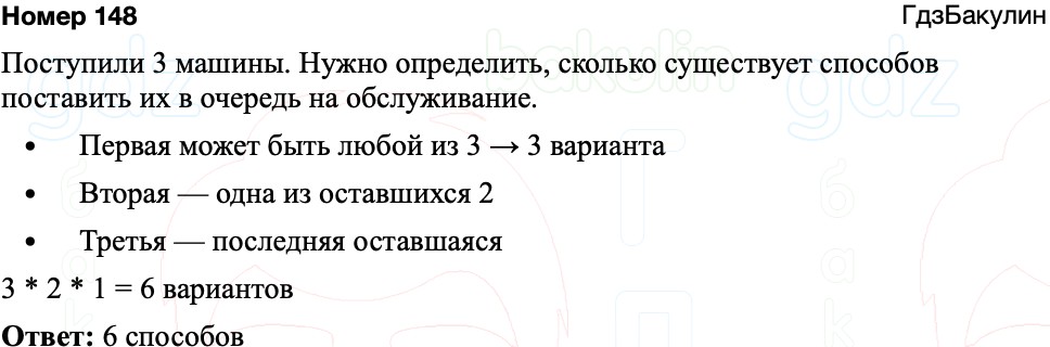 В автосервис одновременно приехали 3 машины для ремонта. Сколько существует способов выстроить их в очередь на обслуживание?