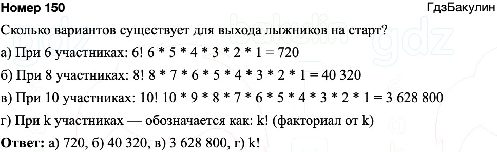 Участники лыжных соревнований стартуют с интервалом в 30 секунд. Чтобы определить порядок старта, спортсмены тянут жребий, определяющий номер старта. Сколько существует различных последовательностей выхода лыжников на старт, если в соревнованиях принимают участие: