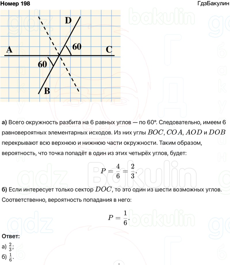 Углы AОВ и COD вертикальные. При этом точка С лежит на луче АО и <АОВ = 60°. Из окружности с центром в точке О случайным образом отбирают точку Х. Найдите вероятность того, что точка Х лежит: