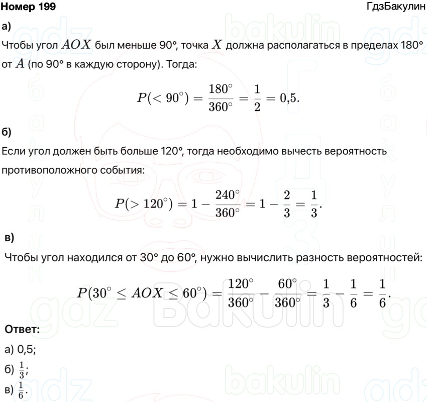 На окружности с центром О выбрана точка А. Из этой окружности случайную точку Х. Найдите вероятность того, что угол АОХ: