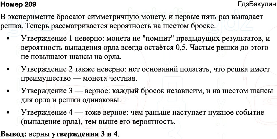 3) При шестом броске орёл и решка имеют равные шансы, так же как они имели равные шансы при каждом из предыдущих бросков.
