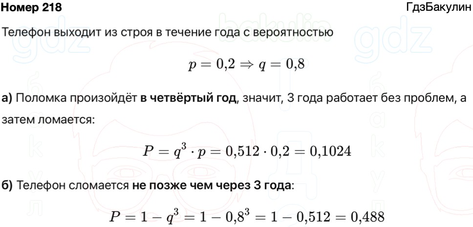 Вероятность того, что новый мобильный телефон выйдет из строя в течение первого года работы, равна 0,2. Если телефон проработал какое-то время, то вероятность его поломки в течение следующего года такая же (в телефоне нет изнашивающихся деталей, поэтому вероятность его поломки не растёт со временем). Найдите вероятность того, что новый телефон выйдет из строя: