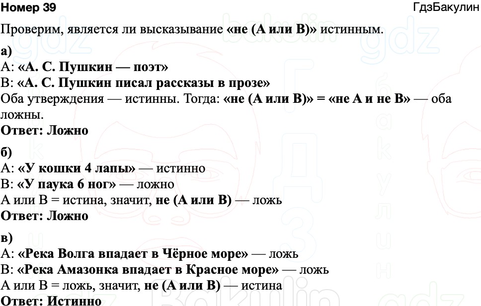 Даны два высказывания А и B. Истинно или ложно высказывание «не (А или В)»?