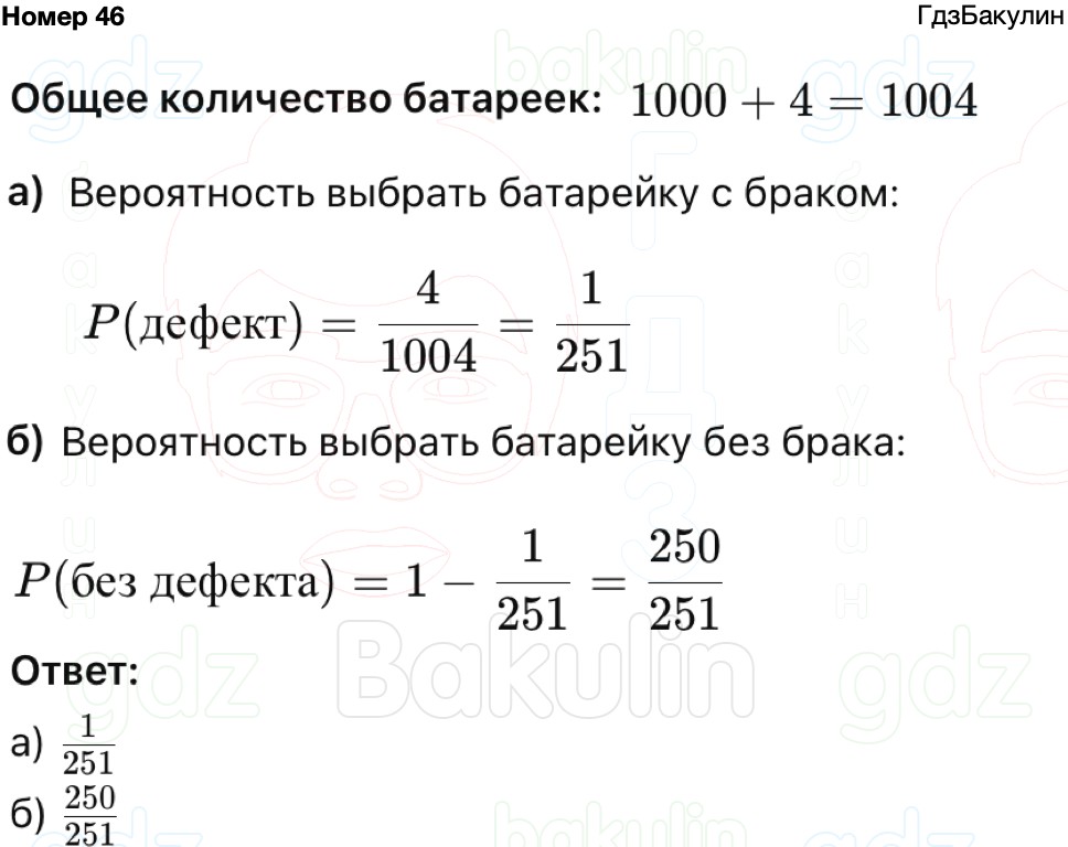 При изготовлении батареек в среднем на 1000 качественных батареек приходится: 4 батарейки с дефектом. Найдите вероятность того:
