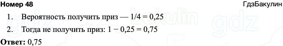 В каждой четвёртой банке кофе согласно условиям акции есть приз. Призы распределены по банкам случайно. Аня покупает банку кофе в надежде выиграть приз. Найдите вероятность того, что Аня не найдёт приз в своей банке.
