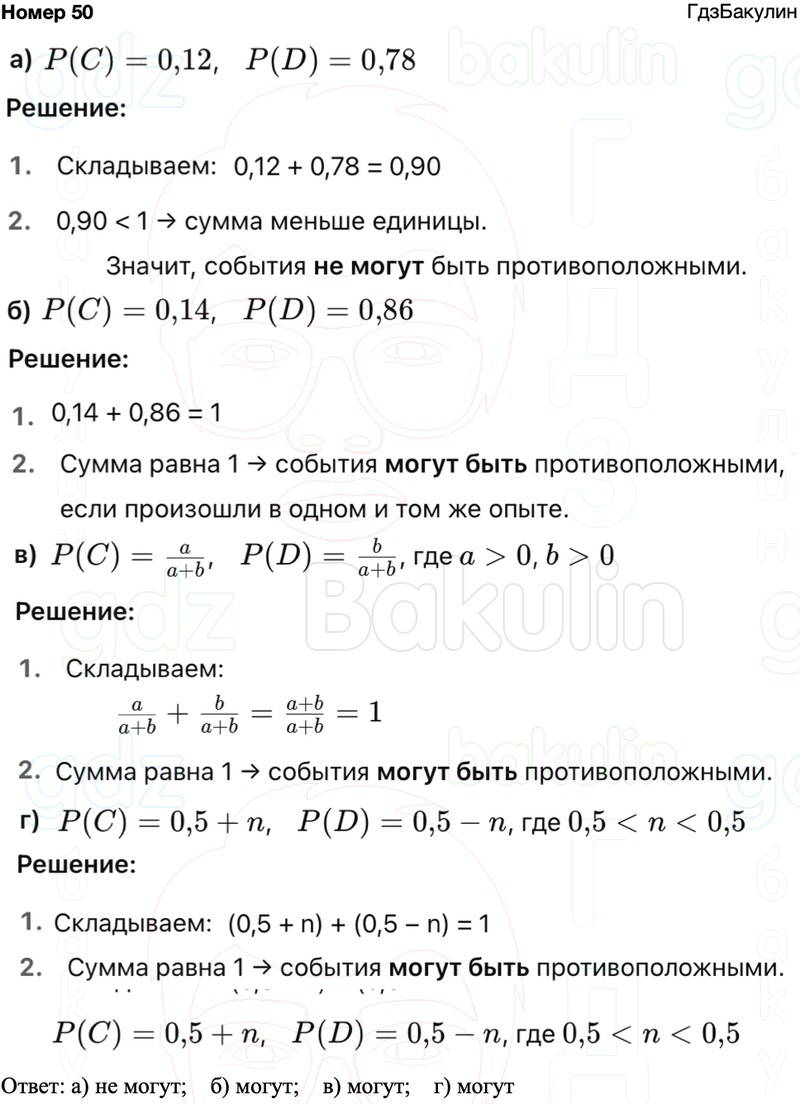 г) P(C) = 0,5 + n; P(D) = 0,5 - n, где - 0,5 < n < 0,5?