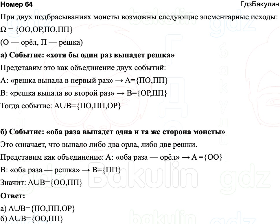 Монету бросают дважды. Представьте в виде объединения двух событий событие: