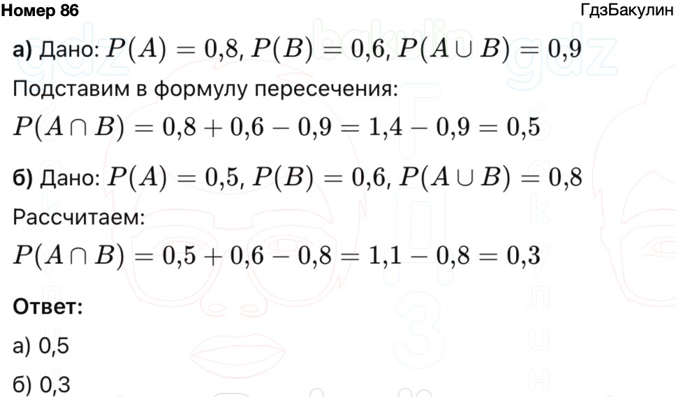 б) P(A) = 0,5, P(B) = 0,6, P(A U B) = 0,8.
