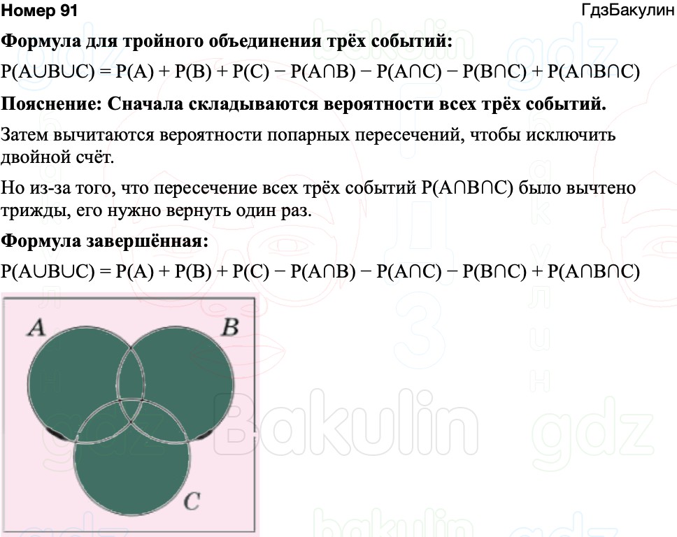 Пользуясь диаграммой Эйлера для событий А, В и С, выведите формулу сложения вероятностей для трёх событий: