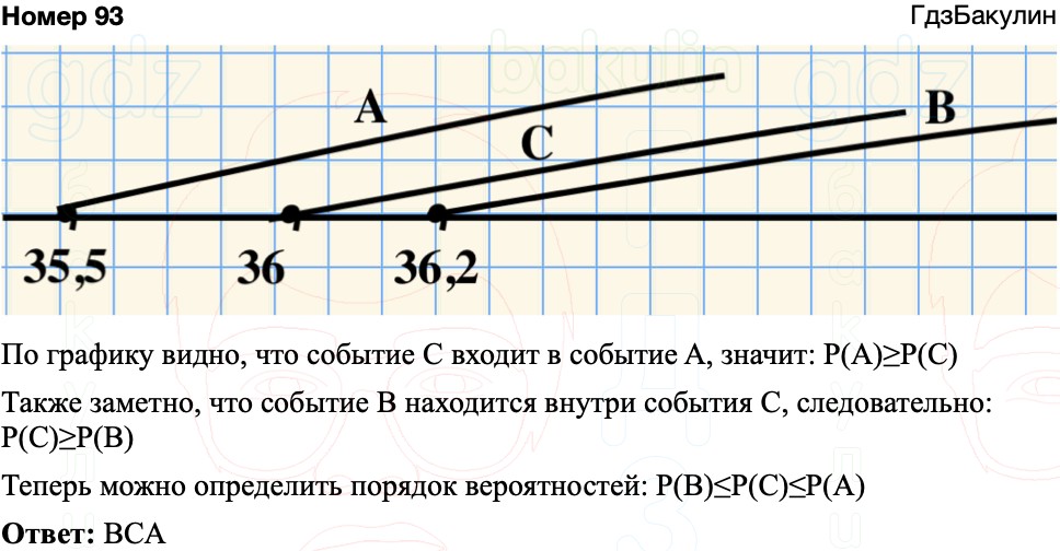 координатной прямой следующие события: A = {температура воды не ниже 35,5 °C},