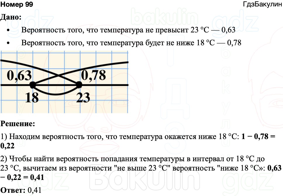 Термометр измеряет комнатную температуру. Вероятность того, что температура окажется не ниже 18 °С, равна 0,78. Вероятность того, что температура окажется не выше 23 °С, равна 0,63. Найдите вероятность того, что температура окажется в пределах от 18 до 23 °С.