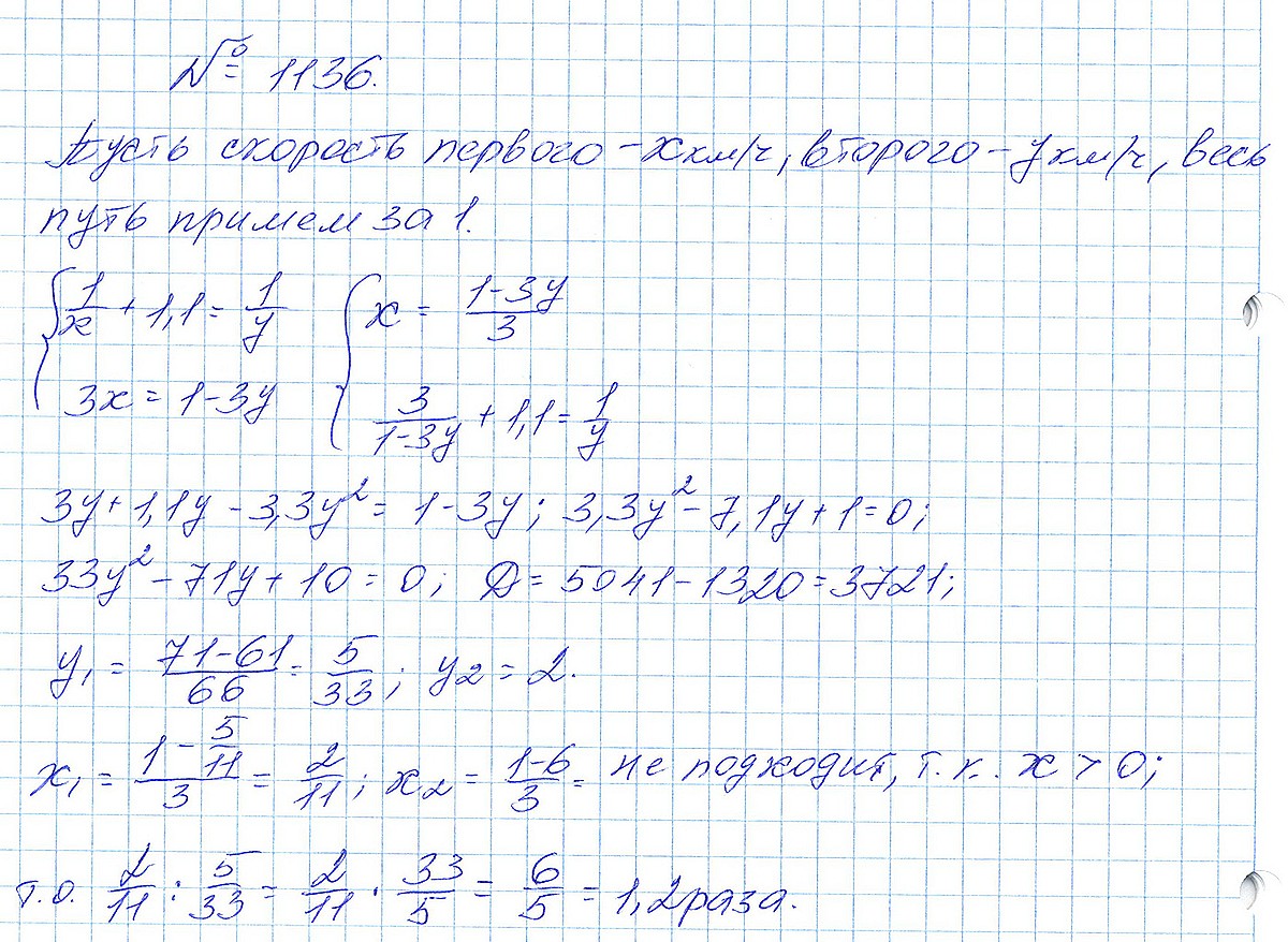 Правильный ответ к заданию ГДЗ по алгебре 8 класс Макарычев под редакцией Теляковского 2024 ФГОС Номера, номер 1136 бесплатно онлайн