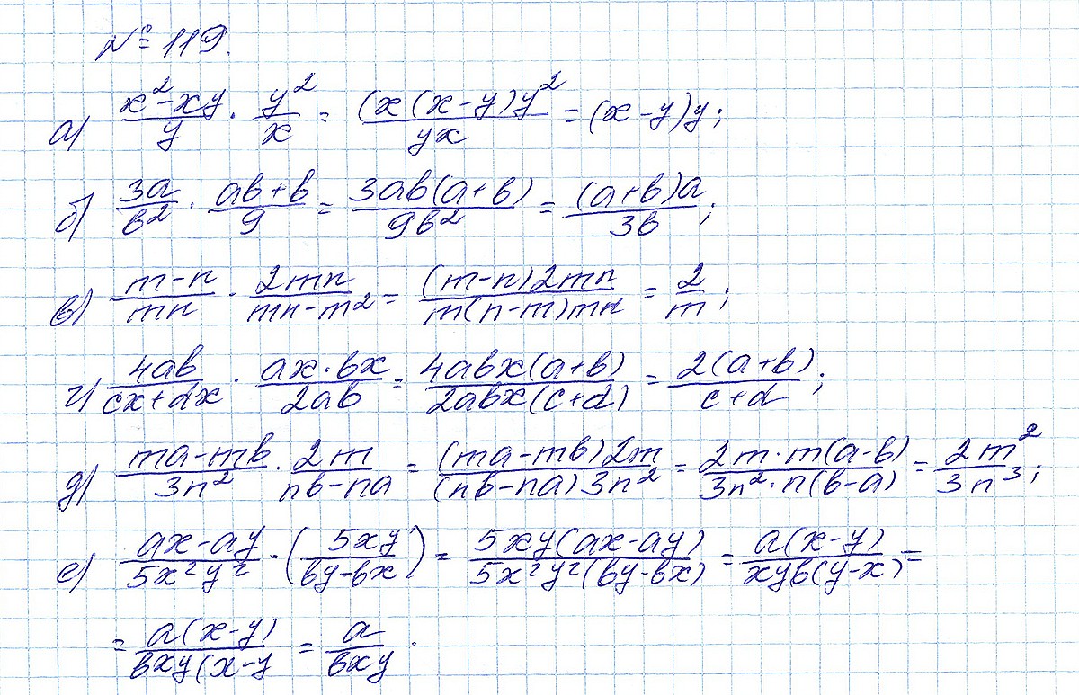 Правильный ответ к заданию ГДЗ по алгебре 8 класс Макарычев под редакцией Теляковского 2024 ФГОС Номера, номер 119 бесплатно онлайн