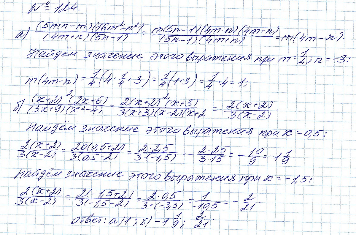 Правильный ответ к заданию ГДЗ по алгебре 8 класс Макарычев под редакцией Теляковского 2024 ФГОС Номера, номер 124 бесплатно онлайн