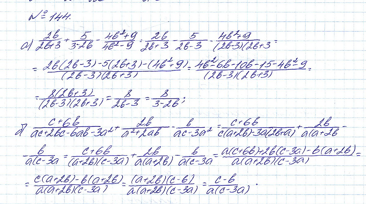 Правильный ответ к заданию ГДЗ по алгебре 8 класс Макарычев под редакцией Теляковского 2024 ФГОС Номера, номер 144 бесплатно онлайн