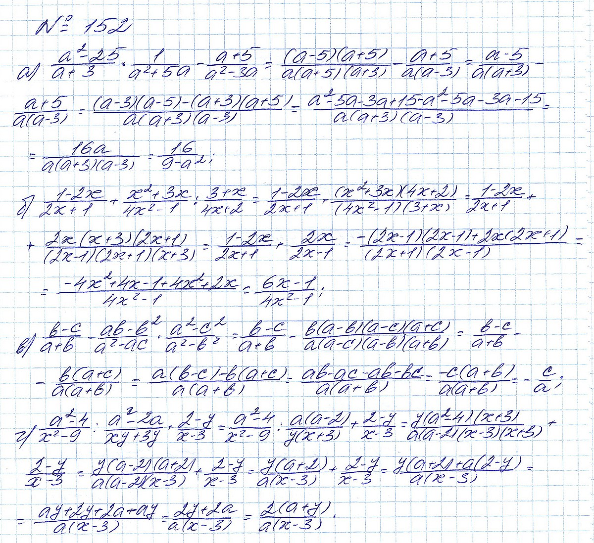 Правильный ответ к заданию ГДЗ по алгебре 8 класс Макарычев под редакцией Теляковского 2024 ФГОС Номера, номер 152 бесплатно онлайн