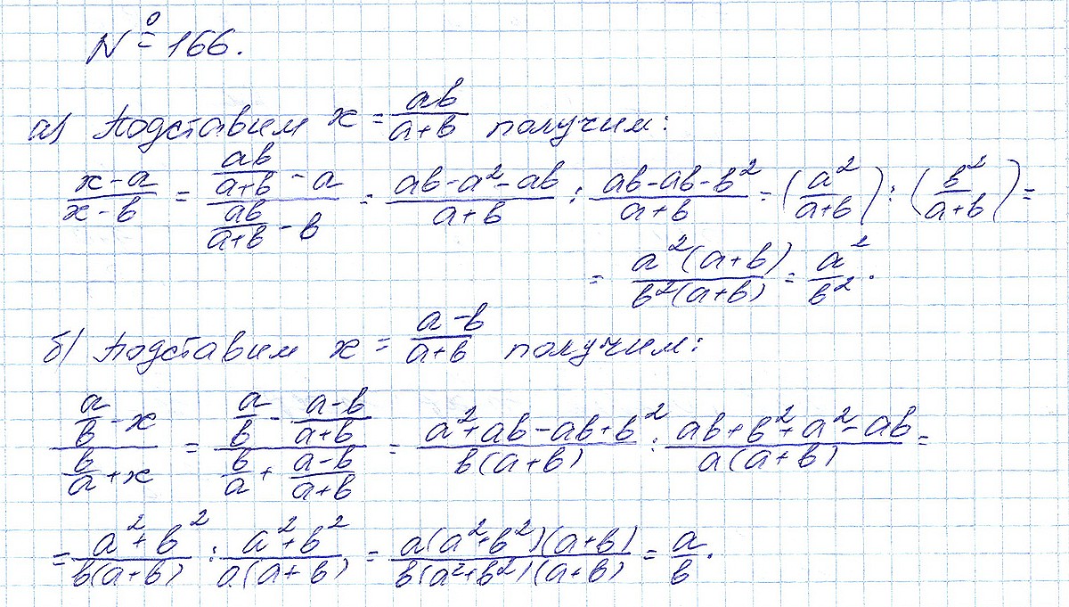 Правильный ответ к заданию ГДЗ по алгебре 8 класс Макарычев под редакцией Теляковского 2024 ФГОС Номера, номер 166 бесплатно онлайн
