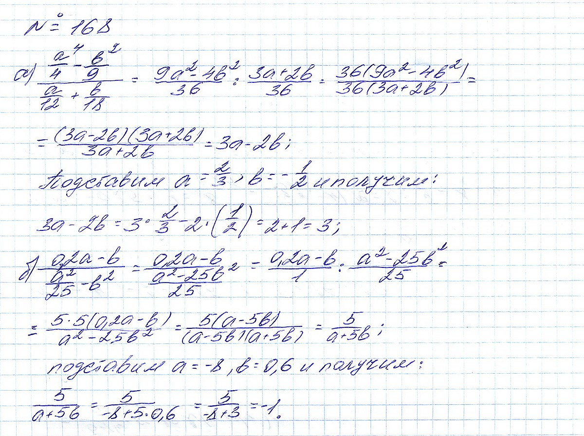 Правильный ответ к заданию ГДЗ по алгебре 8 класс Макарычев под редакцией Теляковского 2024 ФГОС Номера, номер 168 бесплатно онлайн