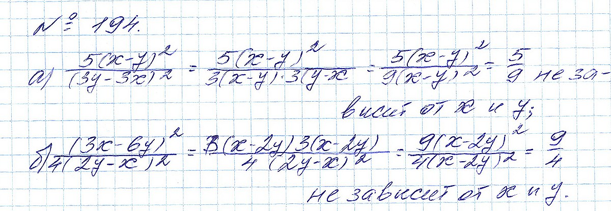 Правильный ответ к заданию ГДЗ по алгебре 8 класс Макарычев под редакцией Теляковского 2024 ФГОС Номера, номер 194 бесплатно онлайн
