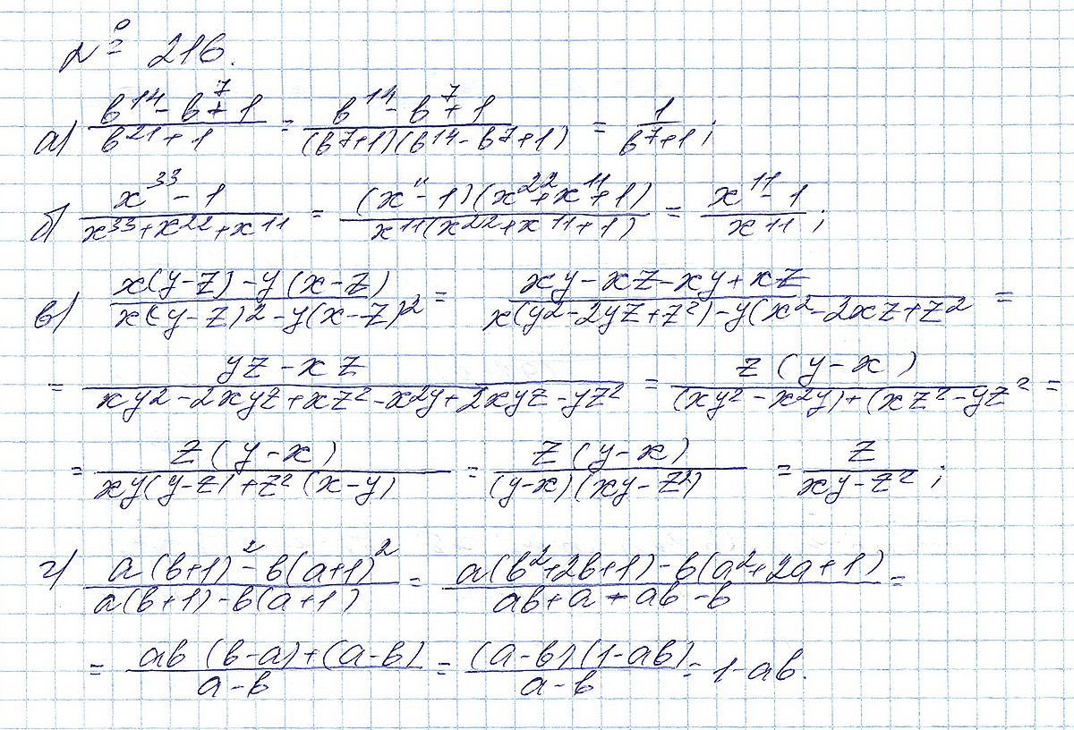Правильный ответ к заданию ГДЗ по алгебре 8 класс Макарычев под редакцией Теляковского 2024 ФГОС Номера, номер 216 бесплатно онлайн