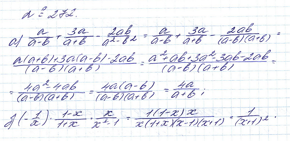 Правильный ответ к заданию ГДЗ по алгебре 8 класс Макарычев под редакцией Теляковского 2024 ФГОС Номера, номер 272 бесплатно онлайн
