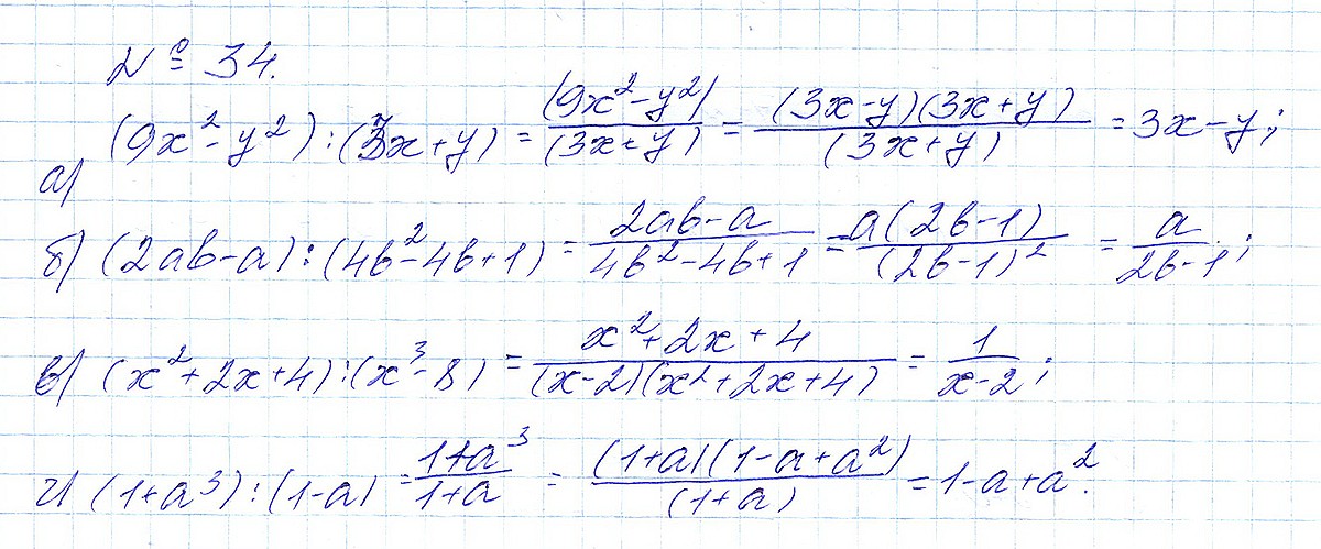 Правильный ответ к заданию ГДЗ по алгебре 8 класс Макарычев под редакцией Теляковского 2024 ФГОС Номера, номер 34 бесплатно онлайн